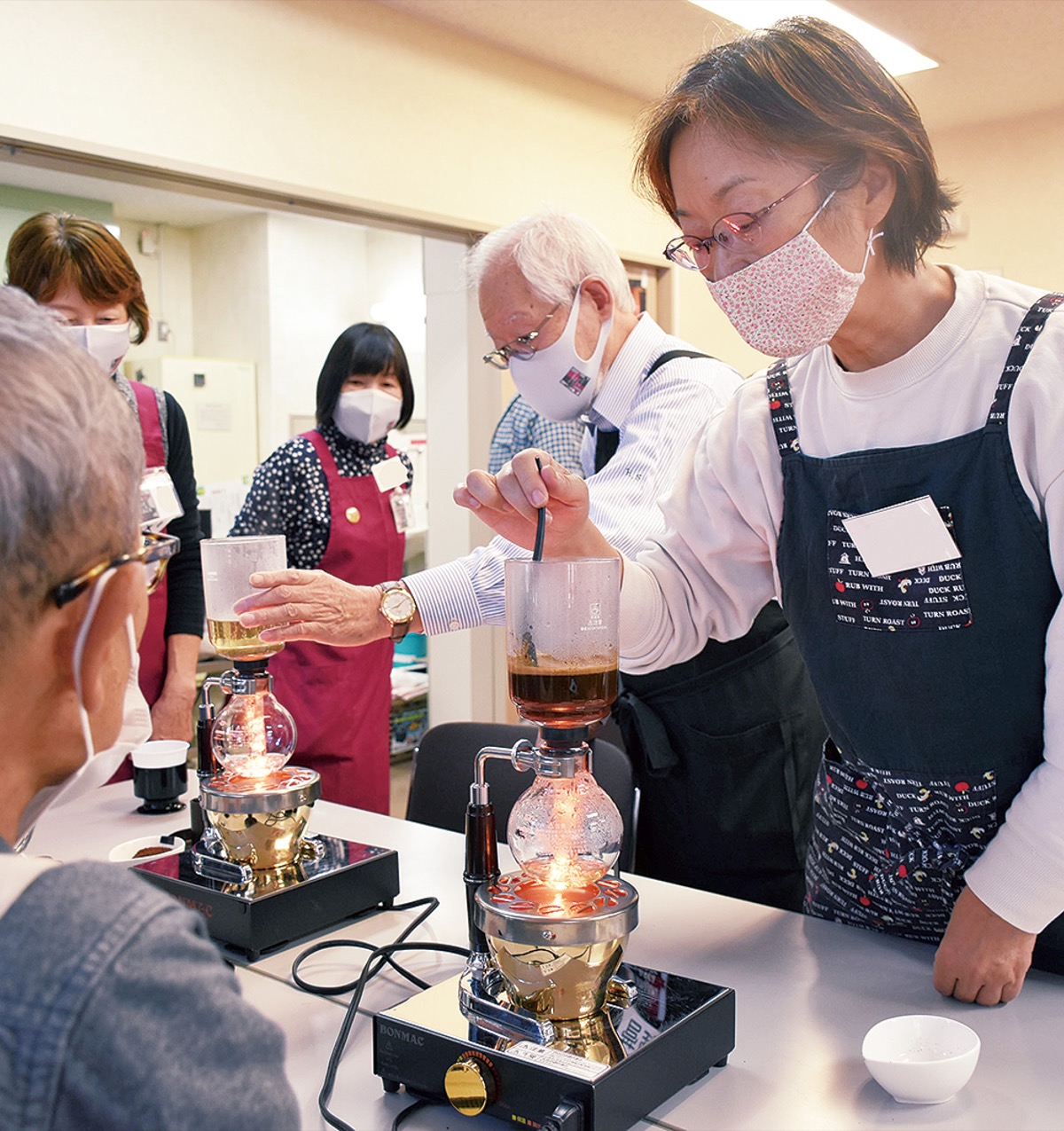 今宿地域ケアプラザ主催のコーヒー講座修了生が立ち上げたボランティア団体「ペリゴール」(菅野弘道代表)が10月26日、地域向けに「美味しいコーヒーの淹れ方講座」を同施設で開いた。