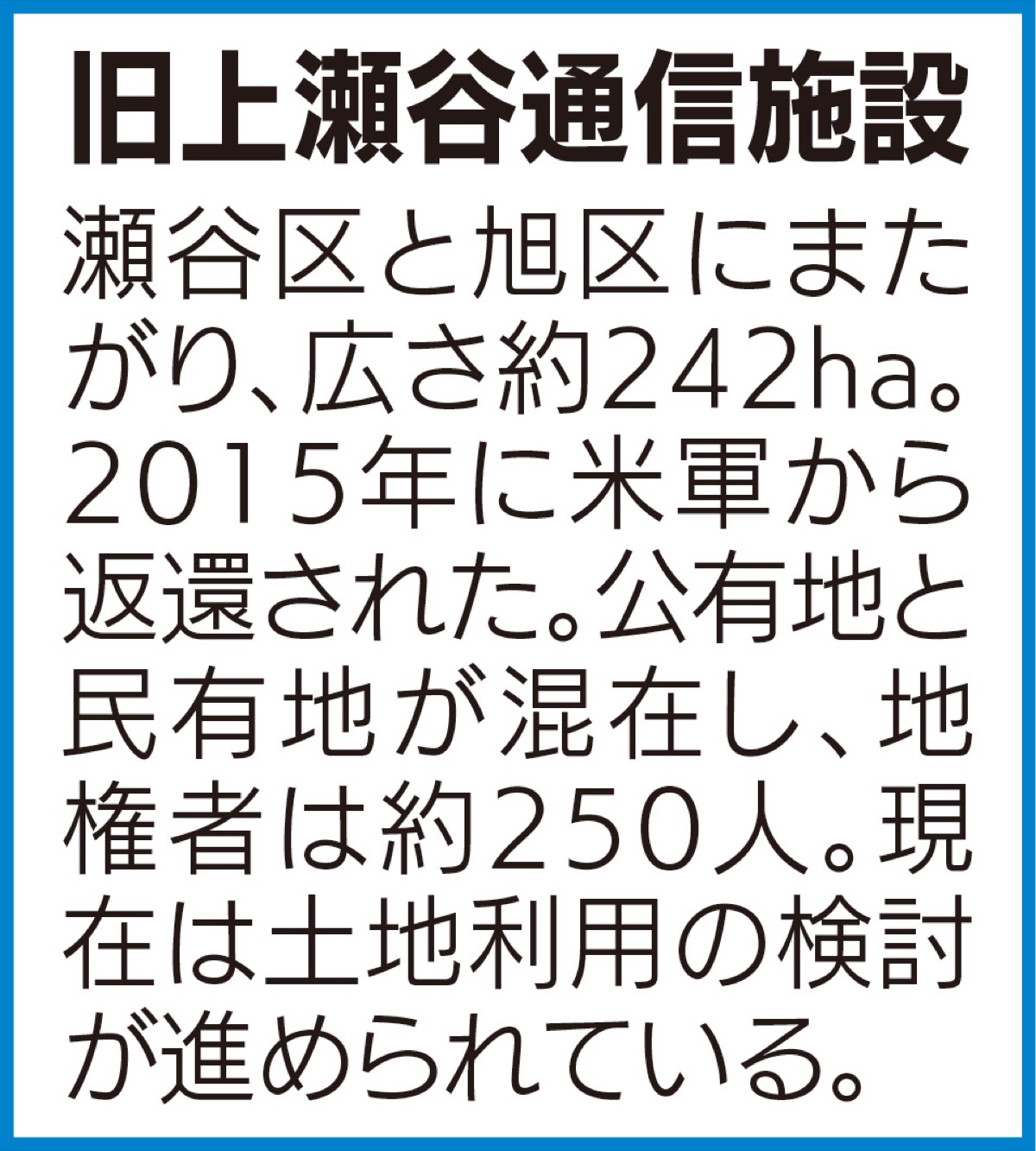 市は運行事業者を決めて今年度中に軌道法特許申請を行い、来年度から工事する計画だった。今回の結果で、開業に向けた計画が不透明になる。上瀬谷交通整備課の担当者は「正式な回答を待ち、今後の進め方を検討する」とコメントした。
