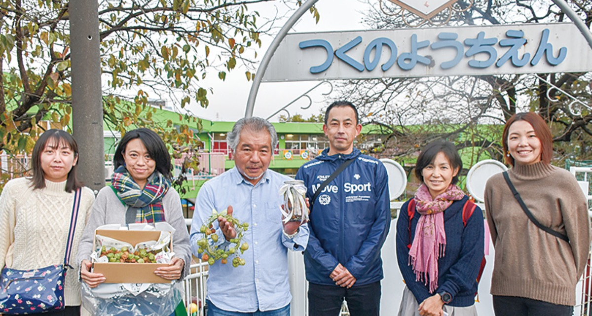 PTAによる笹野台小学校50周年実行委員会記念行事部会はこのほど、近隣の「つくの幼稚園」(本田俊章理事長)=今宿町=にフウセンカズラのつるで作ったリースと、瓶に詰めた種をプレゼントした。