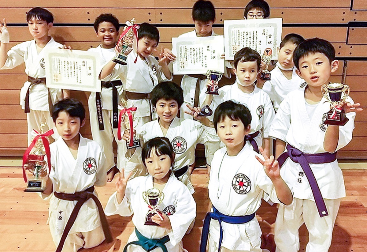 入賞したのは、日比野タイリース有さん(小4組手の部優勝)、兼松侑希さん(小4組手の部3位・形の部3位)、権谷一路さん(小5組手の部優勝・形の部3位)。