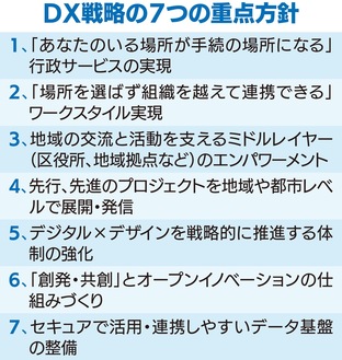 同案の実現に向け、最初の4年間で推進体制や仕組みづくりなどの土台づくりとデジタルの恩恵が実感できる取組や成功事例の見える化などを中心に7つの重点方針を定めた。今後は、同案を踏まえた検討・調整を進め、素案の作成や市民意見募集を行っていく。