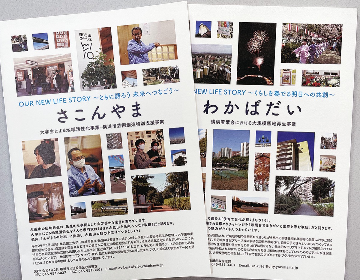 冊子にはそれぞれの団地で取り組んできた活動が紹介され、若葉台団地は「子育て世代が輝くまちづくり」、左近山団地は「大学生を中心に取り組んだ活動」をテーマに編集されている。