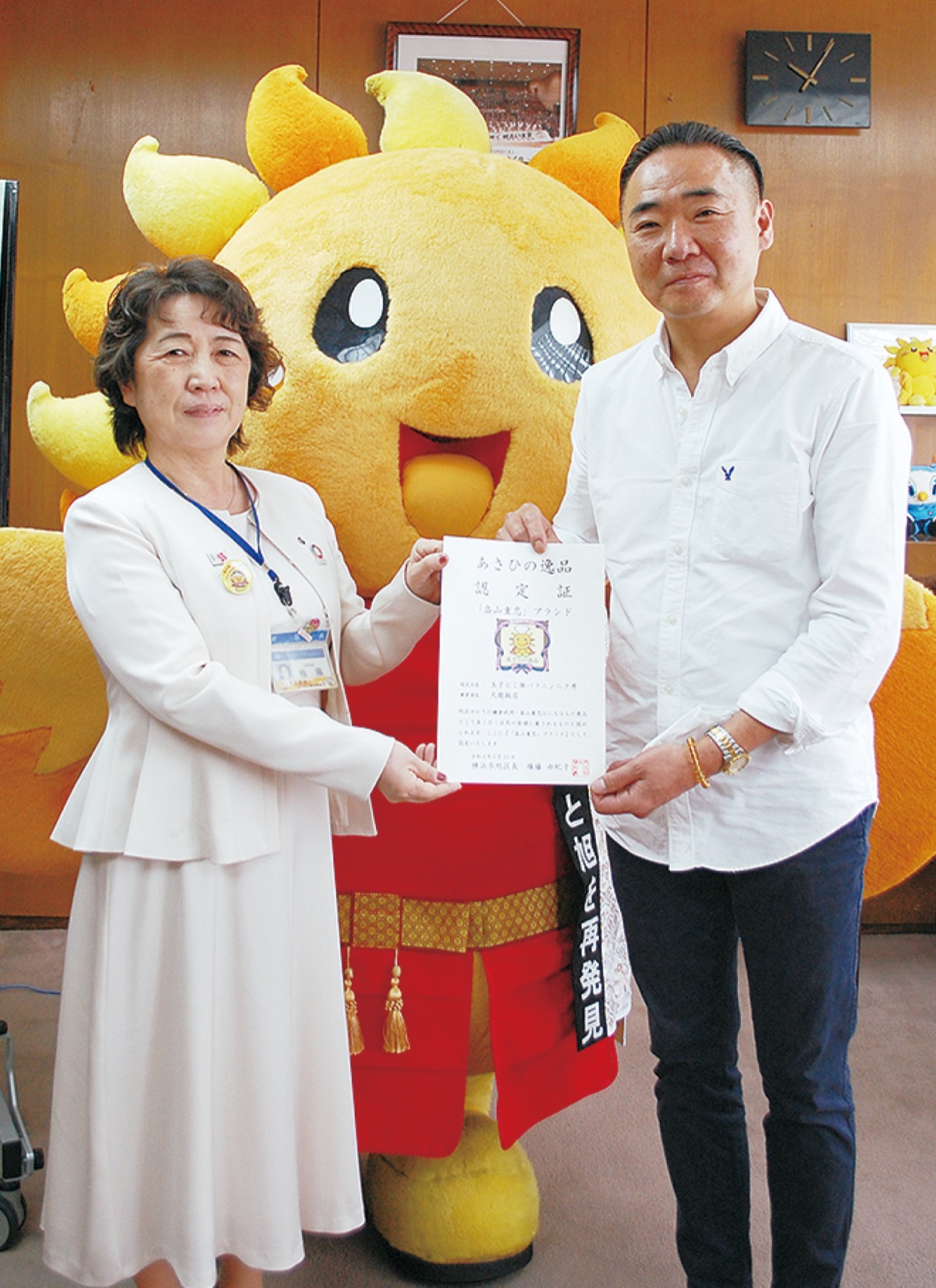 旭区内で販売提供されている食べ物・飲み物の中から特に美味しいと推薦があった物などを、旭区が認定する「あさひの逸品」事業。逸品の中の「重忠ブランド」に選ばれた商品の認定式が5月20日、旭区役所区長室で行われた。