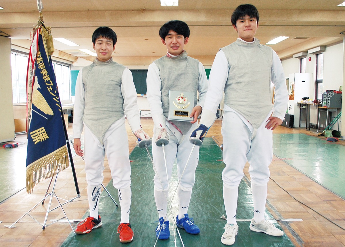 フェンシング男子団体に出場しているのは、キャプテンの坂口駿斗選手(3年)、加藤那琉選手(同)、高橋康希選手(同)の3人。5月29日に県立湘南高校体育館で行われた、インターハイ県予選大会にはシード校として2回戦から出場した。団体戦のルールは先に5勝したチームが勝利。同校は準決勝で法政二に「5―4」で勝ち、決勝では坂口選手が相手の日本代表でもある選手に勝つなど慶応に「5-4」で競り勝ち、インターハイ出場を決めた。「最後までもつれるギリギリの戦いでした。坂口の勝利で皆の気持ちに余裕ができたことが優勝につながった」と山下海監督は話す。