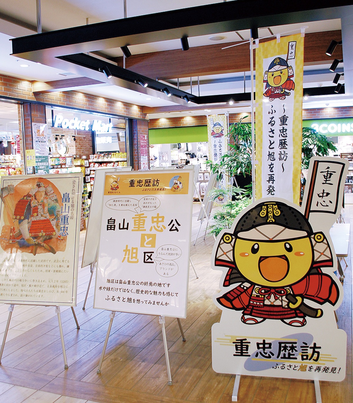 現在放送中のNHK大河ドラマ『鎌倉殿の13人』で、人気若手俳優・中川大志さんが演じている、旭区ゆかりの武将・畠山重忠。旭区はドラマを契機に区の魅力を発信するため9月15日(木)まで、二俣川駅直結の商業施設「ジョイナステラス二俣川」に重忠情報発信コーナーを開設した。