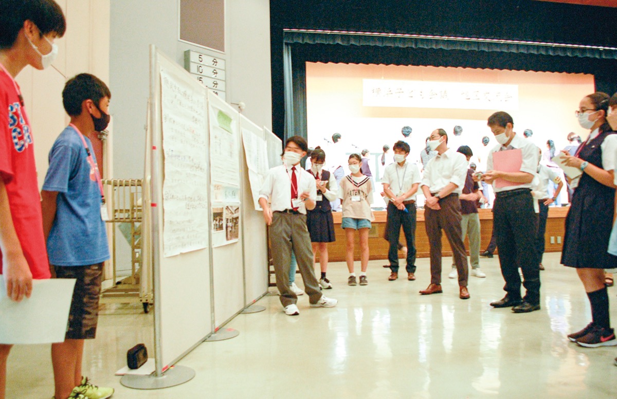 児童・生徒が主体となり、いじめの未然防止に取り組む横浜市の事業「横浜子ども会議」。区内各市立小・中学校の活動を持ち寄る区交流会が8月30日、旭公会堂で行われた。コロナ禍で3年ぶりの実施となった。