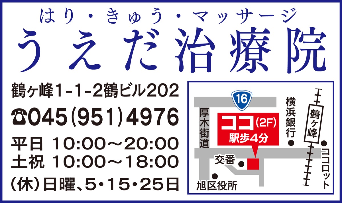 鶴ヶ峰旭区役所の近くの『うえだ治療院』は、国家有資格者の上田智文院長が「身体ははりきゅう施術・息は指導・心はカウンセリング」を行う治療院。心を整えるセラピー(別料金)もあり、自律神経の乱れや心の不調などの改善にも取り組んでいる。
