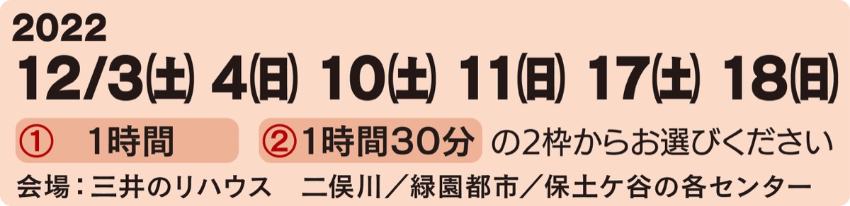 そこで紹介したいのが三井のリハウスが行う無料の個別相談会。12月の週末は二俣川駅南口そばの二俣川センターなど最寄りの3センターがタッグを組み対応してくれる。センターの垣根を越え、所長自ら対応してくれるまたとないチャンス。秘密厳守の完全予約制。午前10時〜午後6時のうち1時間又は1時間30分の2枠から選択を。