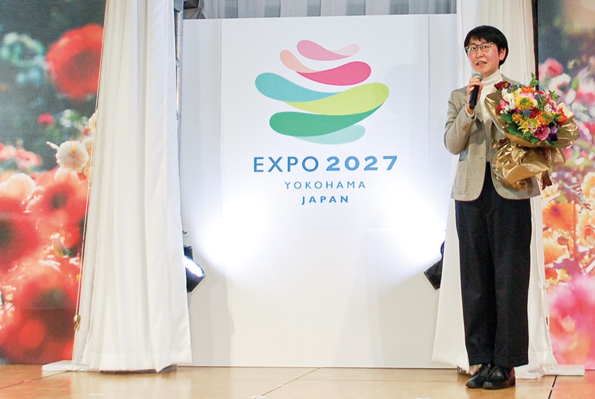国際園芸博覧会の開催1500日前イベントが2月8日に都内であり、公式ロゴマークの最優秀賞が発表された。応募1204点から選ばれたのは喜多祐子さん(岐阜県)の作品で、横浜市の花バラに見えるようにデザインしたというもの。喜多さんは「博覧会を楽しみにしている一人として、このような形で関わることができて幸せです」と喜んだ。