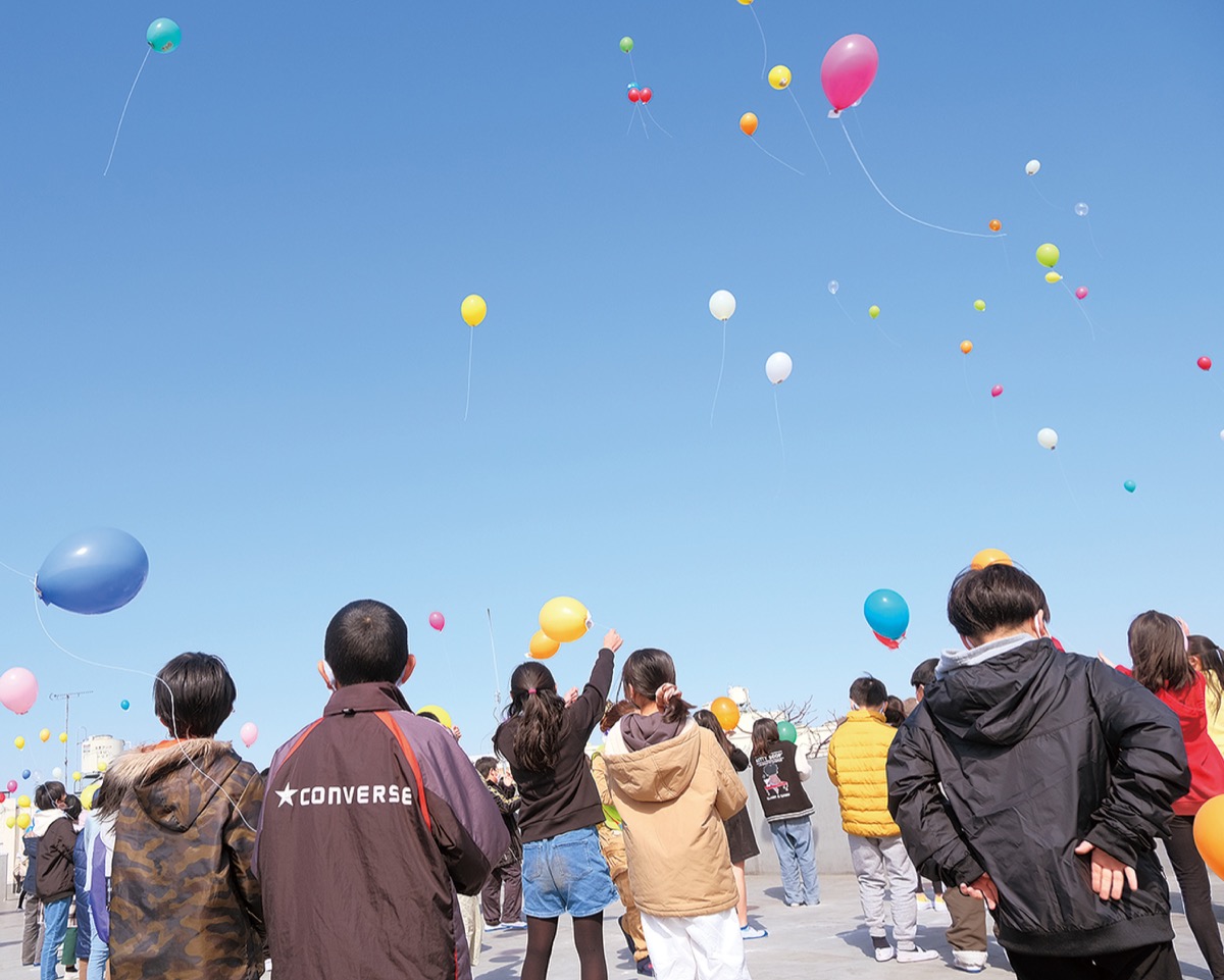 同校では「150年の感謝 笑顔 ともに未来へ歩む」をテーマに2月20日から25日までの1週間を150周年ウィークとしてさまざまなイベントを実施。20日にはバルーンリリースや廊下を飾った。また、22日には、新型コロナウイルス感染症の影響で少数に分かれて行ってきた音楽会を、3年ぶりに全校でも開催した。