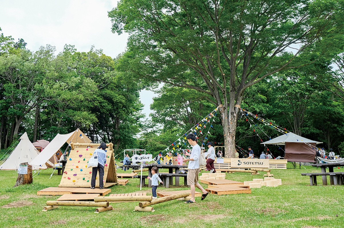 今年のテーマは「はじめての体験」。巨大ウッドデッキやハンモック、テントの他、キッチンカーなどが設置され、来場者は食事や遊びを楽しんでいた。また、ワークショップやライブパフォーマンス、会場でしか手に入らないグッズも販売された。