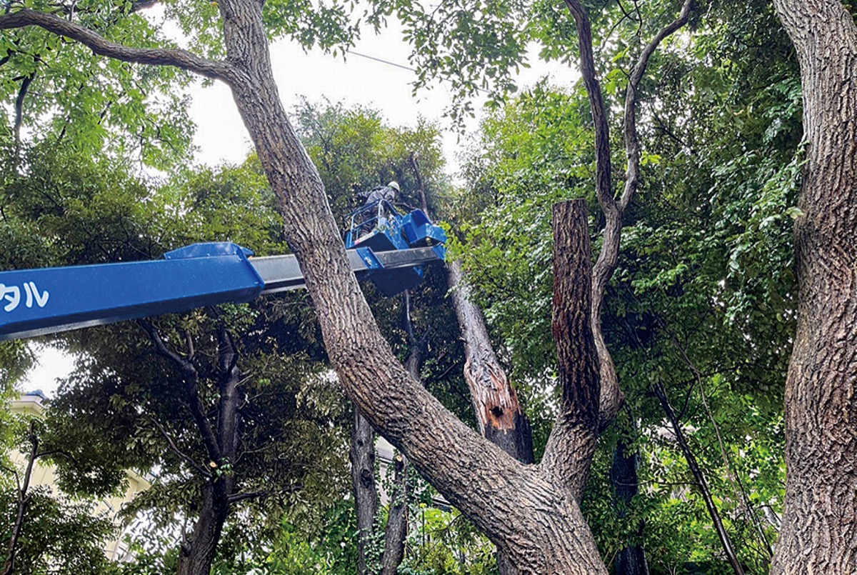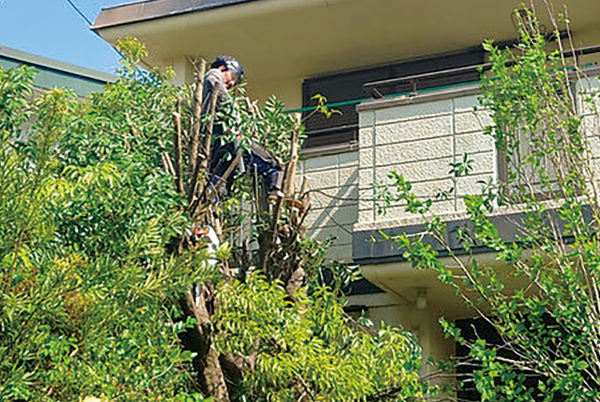 2022年には旭区と二俣川ニュータウン連合町内会と「空家環境改善すすめ隊」を立ち上げた。同社は伸び放題の庭木、特に専門技術を活かし、高木の伐採や処理を担当。所有者はもちろん、地域住民からも大いに感謝されたという。
