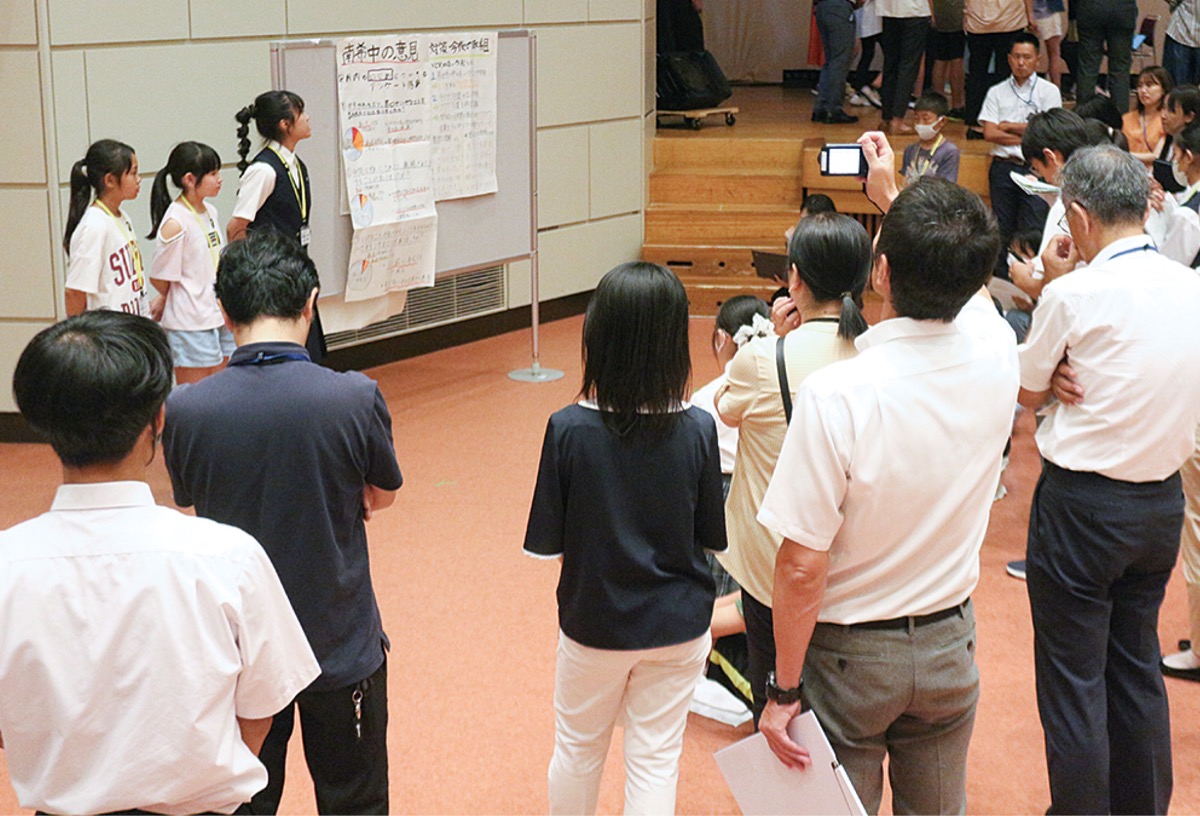 自身も発表を行った南希望が丘中学校の鶴見香里奈さんは「それぞれの学校に対応した取り組みが行われていてすごいと思った。また、小学生と関わる機会もあり、自分とは違う学年の子から、新しい視点を学ぶことができた」と話す。また、今宿中学校の生徒会長を務める山内晴太さん(3年)は、生徒会の仲間と夏休みに発表資料を作成。重要な所に色を付けたり、字を大きくしたりする等工夫を凝らした。発表を終え「色々な学校が独自の取り組みを行っていることが分かったので、自分たちの学校にも取り組みを入れて、いじめの未然防止につなげたい」と語った。発表終了後、都岡中学校の佐久間桂一校長は「どのブロックも工夫した発表でよかった。ぜひ今日の発表内容を家や学校に持ち帰って振り返りを」と子ども達に求めた。