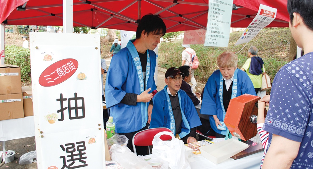 メイン会場の一つ鶴ヶ峰商店街協同組合駐車場には、鶴ヶ峰商店街協同組合(近藤二義理事長)の加盟店などによる恒例の「ミニ商店街」が登場する。