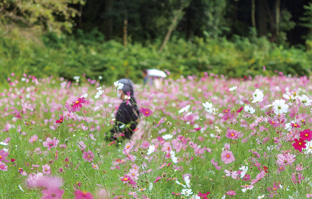 野境道路と中原街道の間にある「矢指市民の森」=旭区矢指町=では、今年もコスモスが見頃を迎えている。森を管理している「追分・矢指市民の森愛護会」の関水金作会長によると、猛暑の影響もあり、咲き始めは少し遅く「今が見頃」とのこと。森にはコスモスのほか、鮮やかな暖色系のマリーゴールドも満開。