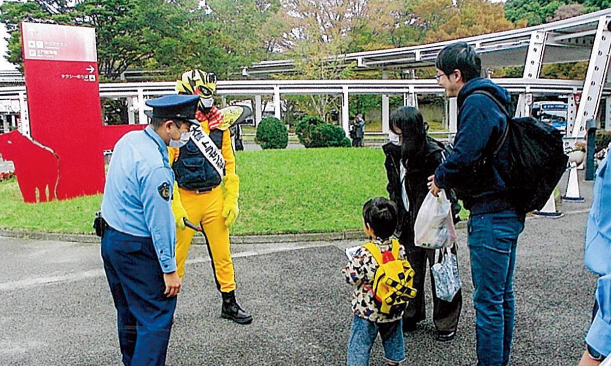 旭警察署(吉田善成署長)は、防犯意識向上を呼び掛ける「安全・安心まちづくりキャンペーン」を、10月14日によこはま動物園ズーラシア=上白根町=正門付近で行った=写真。