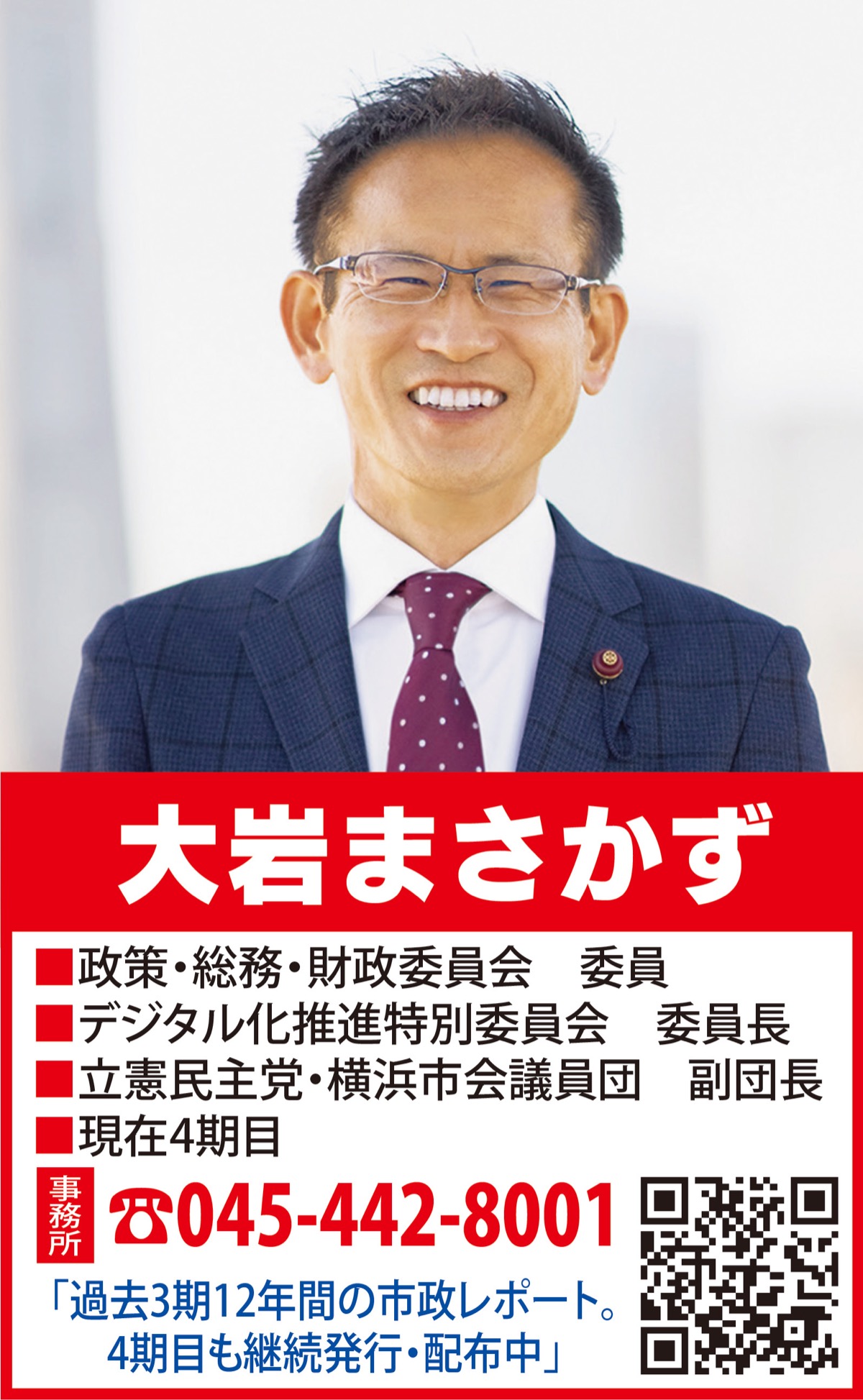 昨年4月の横浜市会議員選挙で1万4919票を頂き、4期目は最上位で当選させていただきました。皆様の期待に応える為、これからも全力で活動します。当選した86名のうち、15名の議員で会派「立憲民主党・横浜市会議員団」を結成。会派の副団長を務めています。また、第一常任委員会である「政策・総務・財政委員会」の委員を、「デジタル化推進特別委員会」では2度目の委員長を務めています。