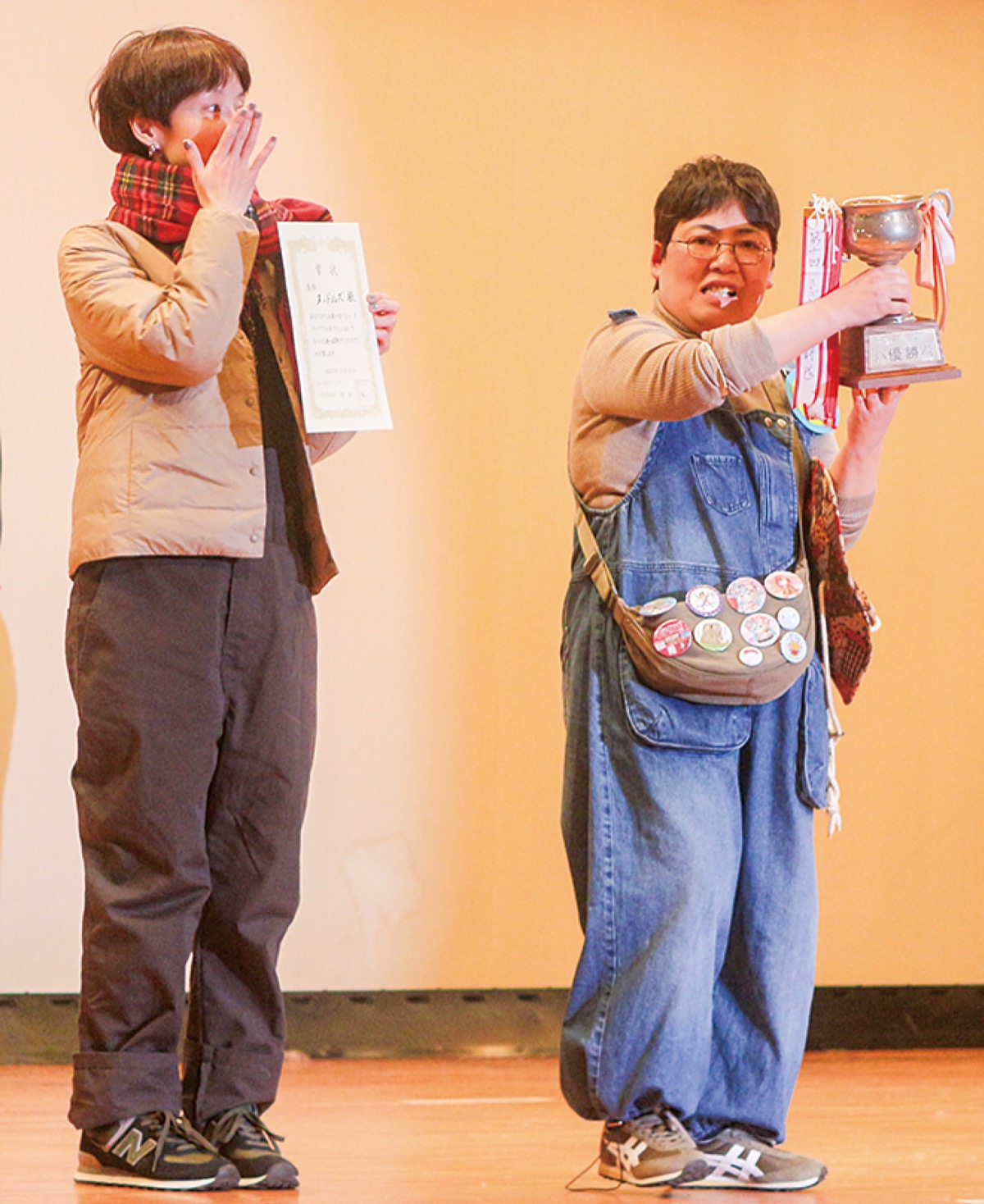 大賞に選ばれたのは、マインド葦から出演したスワッチさんとサポートアーティストの笠木泉さんのコンビ「ヌードルズ」。スワッチさんは「マインド葦から大賞に選ばれたのは初めてなので嬉しい」と喜びを語った。