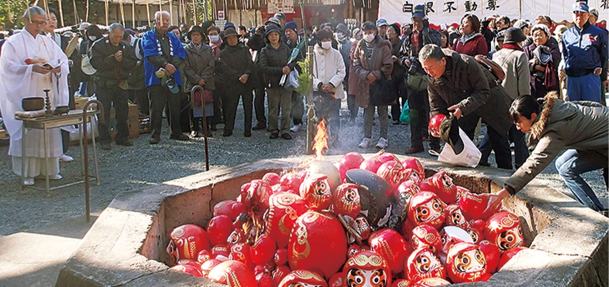 1月28日(日)の初不動の日には、だるま市を開催。時間は午前9時から午後3時まで。市には毎年、大小さまざまのだるまを求めて旭区近隣から多くの参拝者が訪れる。
