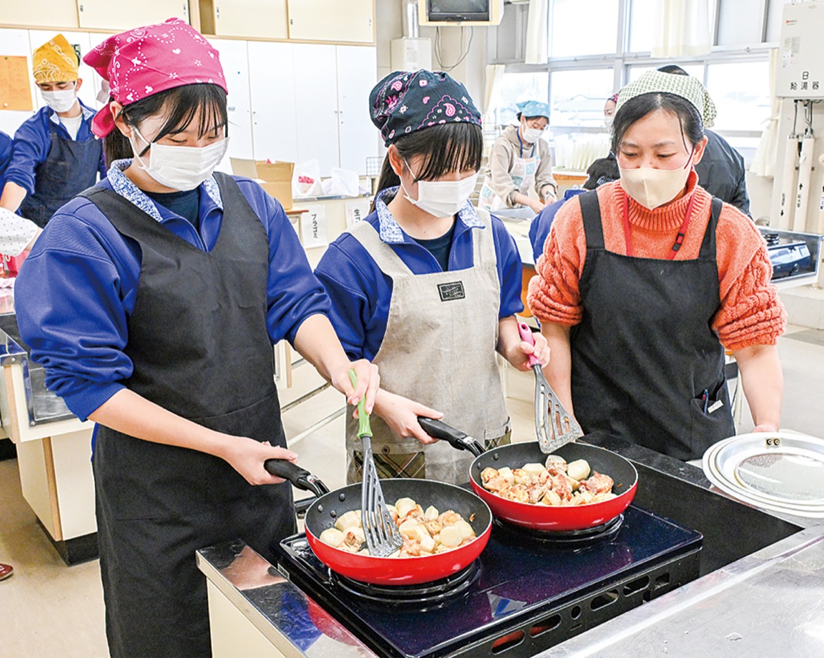 コラボには同中学校の保健委員会の生徒らが参加。「旭区名物を作ろう!」を旗印に、1年ほどかけて献立を作成していった。
