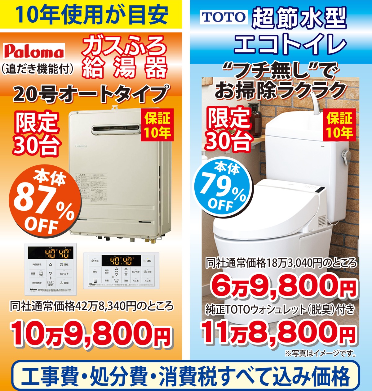 累計6万件の施工実績 保証10年 給湯器節水トイレ