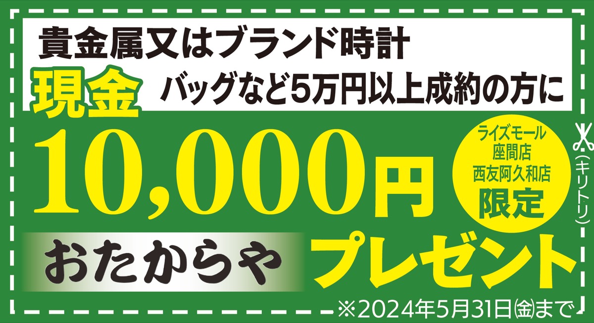SEIYU阿久和店隣にある「おたからや」では現在、「金貨・銀貨高価買取キャンペーン」を開催している。