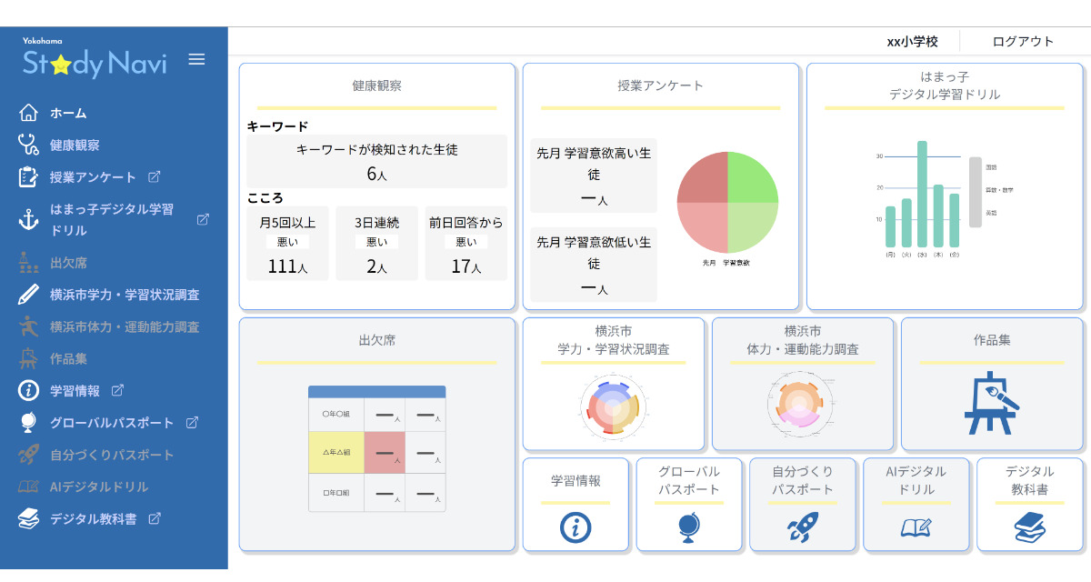 横浜市は小・中・義務教育学校・特別支援学校でデータに基づいた児童・生徒の学習理解や授業改善を図るため、端末を活用した学習ダッシュボード「横浜 St☆dy Navi(よこはまスタディナビ)」の運用を6月下旬に始める。