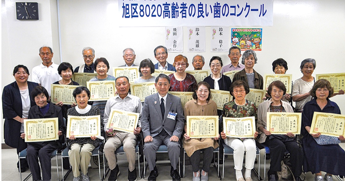 表彰式には21人が出席し、賞状と同会の女性歯科医師手づくりのプリザーブドフラワーが贈られた。受賞者からは「自分の歯でご飯を食べられるのが最高です」「旭区の歯医者さんのおかげ」などと喜びの声が上がった。