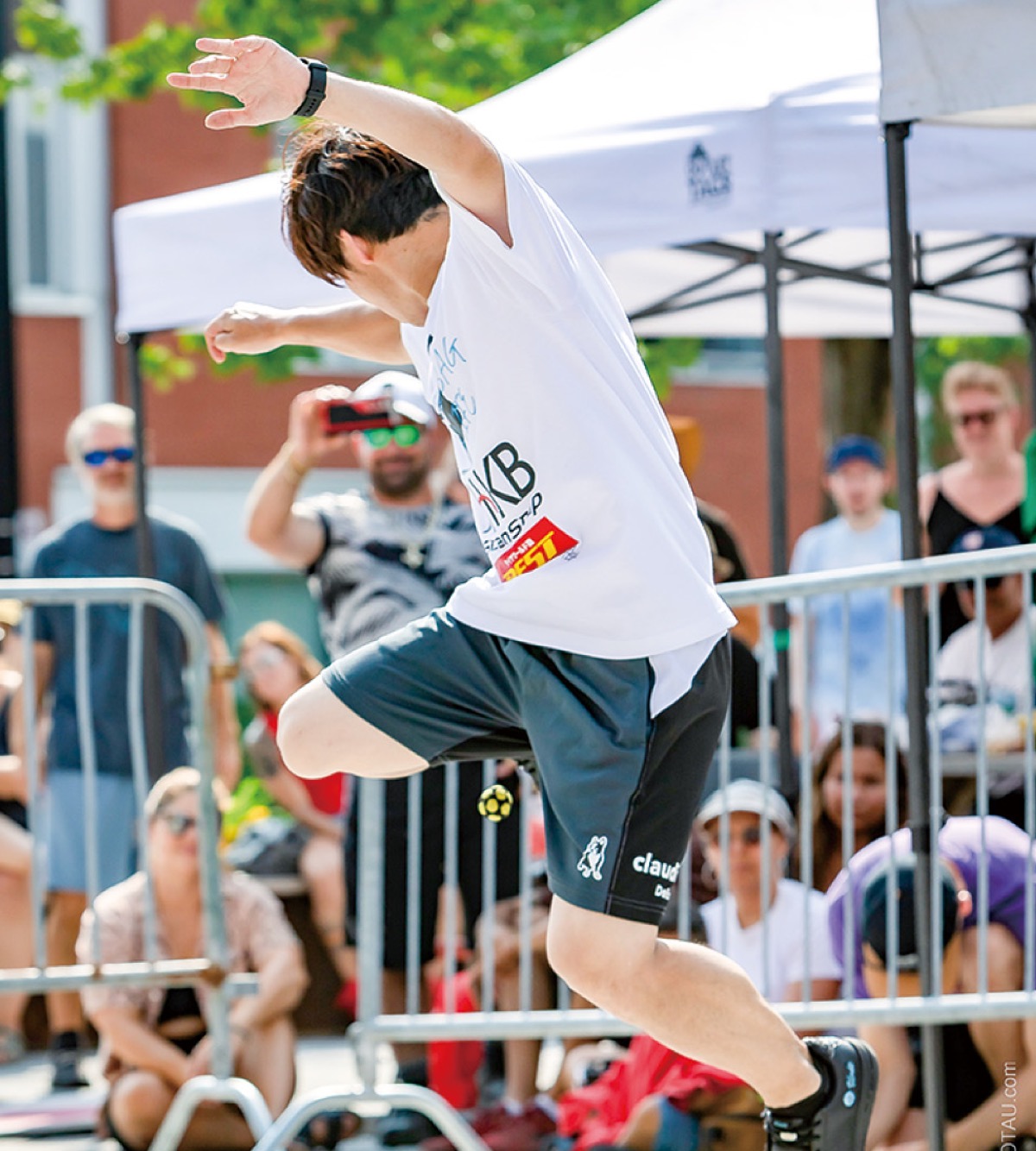 大会での活躍が評価され、2018年には選手として世界の殿堂入り。今年6月には競技普及などの貢献で、フットバッグ業界全体での殿堂入りも果たした。21年には2つのバッグを1つの足でジャグリングした合計回数のギネス世界記録に挑戦し成功している。