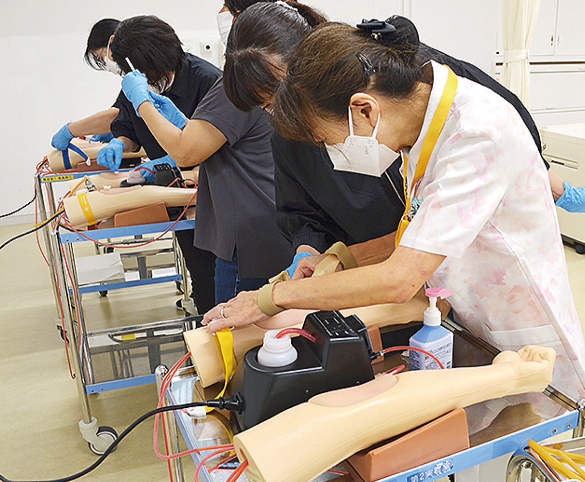 参加した40代の女性は「7年間総合病院で働き、育児で離れた後は福祉施設などで働いてきたが医療か福祉か見極めようと参加した」。同校の望月紀子副学校長は「看護師の人手不足はコロナが明けてから深刻。離職者が現場復帰する一助となれば」と話していた。