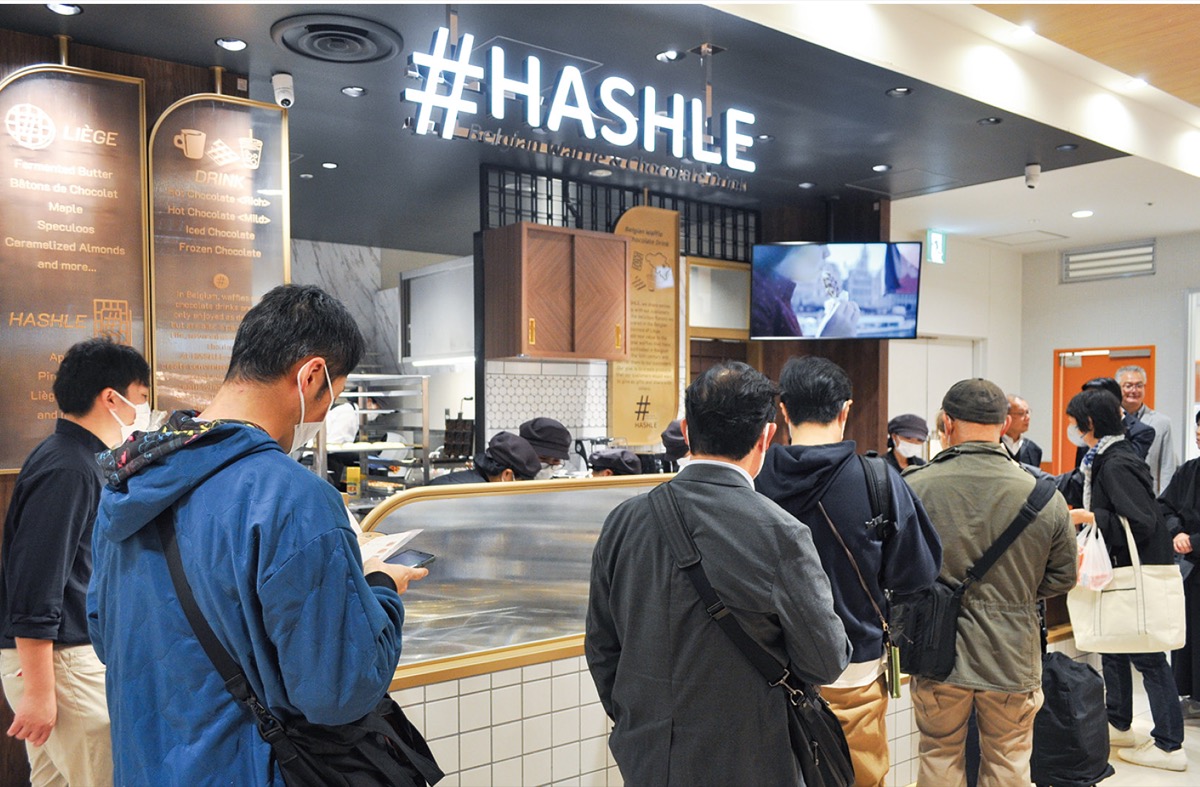 ベルギーワッフルやチョコレートドリンクの専門店「HASHLE(ハッシュル)」が11月11日、相鉄線二俣川駅直結のジョイナステラス二俣川2階にオープン。初日は開店直後から行列ができるなど賑わいを見せた=写真=。