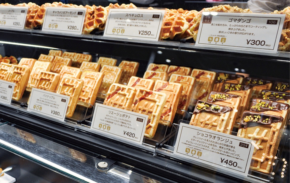 同店は、食品流通やオークション事業などを手がける荒井商事(株)=平塚市/荒井亮三代表取締役社長=が運営。同社の新業態となる店舗で、本場・ベルギーの製法や素材を参考に開発したという、丸い形が特徴の「リエージュワッフル」、生地のなかに具材を包み込んで焼いた「ハッシュルワッフル」などを取り扱っている。日本国内で珍しいというハッシュルワッフルには、ポテトなど惣菜タイプもあり、軽食としてもおすすめだという。