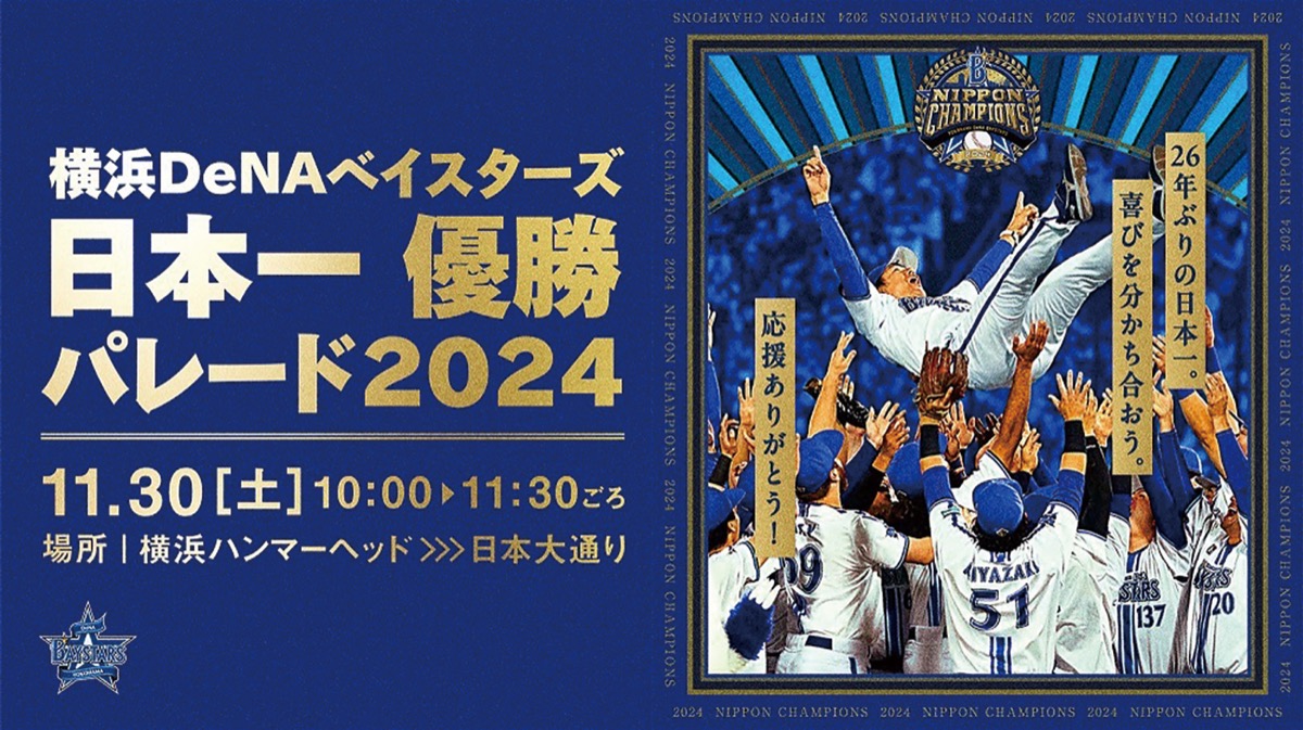 プロ野球の横浜DeNAベイスターズが日本一になったことをチームとファンが祝う「横浜DeNAベイスターズ日本一 優勝パレード2024」が11月30日(土)に行われる。球団や横浜市などで構成される実行委員会が主催する。