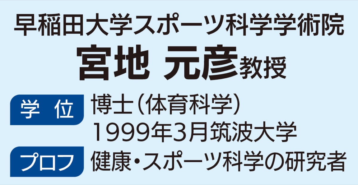 ウォーキングやスポーツ、体を動かすことが心地よい季節――。本紙では(公財)かながわ健康財団=横浜市中区=の紹介で「健康づくりに欠かせない運動習慣」について健康・スポーツ科学のプロフェッショナルである早稲田大学スポーツ科学学術院教授の宮地元彦博士(59)に特別インタビューを行った。
