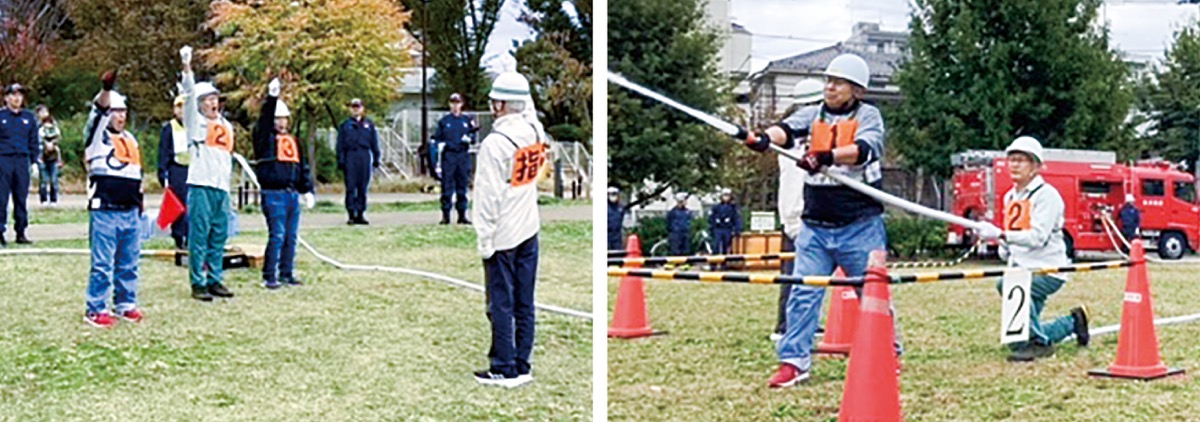瀬谷区の二ツ橋公園で11月10日、火災時の被害軽減や地域連携強化を目的とした「町の防災組織初期消火合同訓練会」が開かれた。