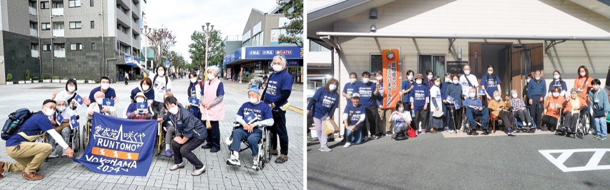瀬谷区からは愛成苑、咲くや愛成、スプリングガーデン瀬谷、グループホーム泉の郷 本郷の利用者や家族、職員ら30人が参加し、中瀬谷消防出張所前から瀬谷駅へ向けて出発。合同会社アダプテッドスローが作成した小旗を手に、沿道に住む住民や企業から声援を受けながら移動した。