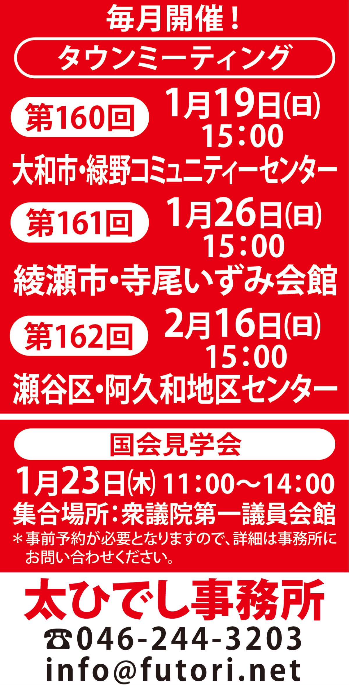 今年も変わらず毎日街頭に立ち、毎月タウンミーティングを開催し、地域の声を国に届ける草の根活動を重ねます。