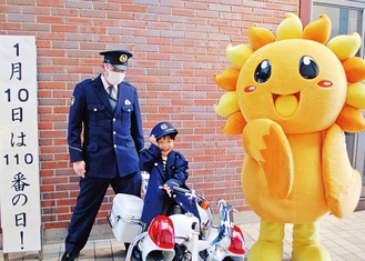 二俣川駅で開かれたキャンペーンでは、旭警察署(吉田善成署長)や(一社)神奈川県警親会旭支部のメンバーら、さらに旭区のマスコットキャラクター「あさひくん」も参加。駅利用者に向けて110番の適切な利用をよびかけたほか、子どもを対象にしたミニ白バイの乗車体験なども開かれた。