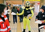 三ツ境駅で開かれたキャンペーンでは瀬谷警察署(吉田明弘署長)や瀬谷区役所職員らが参加。県警の振り込め詐欺防止キャラクター「『絆』大使振り込まセンジャー」も加わり、駅利用者に110番の適正利用のほか、闇バイト犯罪や特殊詐欺への警戒を促した。