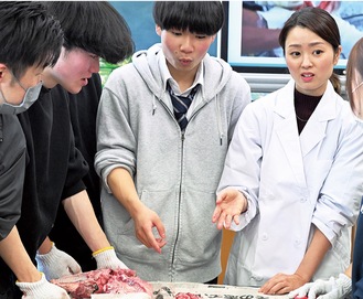 授業を受けた3年の吉川悠太さんは「今日解剖した豚は、自分の意志で来たわけではない。命へ感謝しようと改めて思った」と語った。