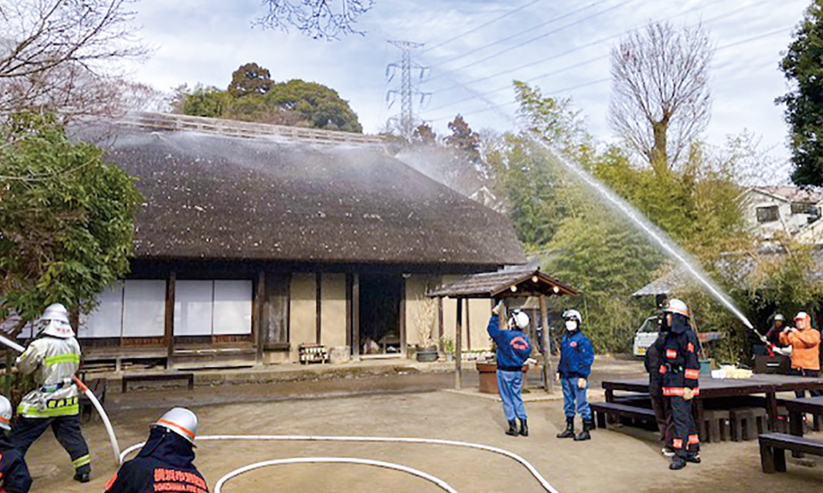 瀬谷区の長屋門公園では、「旧大岡家長屋門」と「旧安西家主屋」が横浜市認定歴史的建造物に認定されていることから、27日に訓練を実施した。