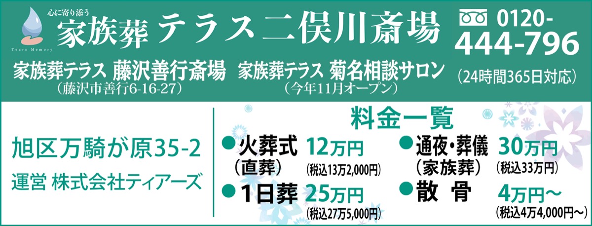 故人や御遺族に寄り添い心のこもった温かいお葬式を提供している、1日1組限定の家族葬専用ホール『家族葬テラス二俣川斎場』。葬儀のことを専門家に聞くシリーズ第3弾では、「斎場の選び方」を同所の代表に尋ねる。