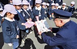 園児たちはこの日、署員の案内のもと、交通事故を処理する車両、署内にある会計課や生活安全課、警備課、講堂などを見学した。各課の業務内容、道具や設備などについて質問する子どももおり、関心を持った様子だった。