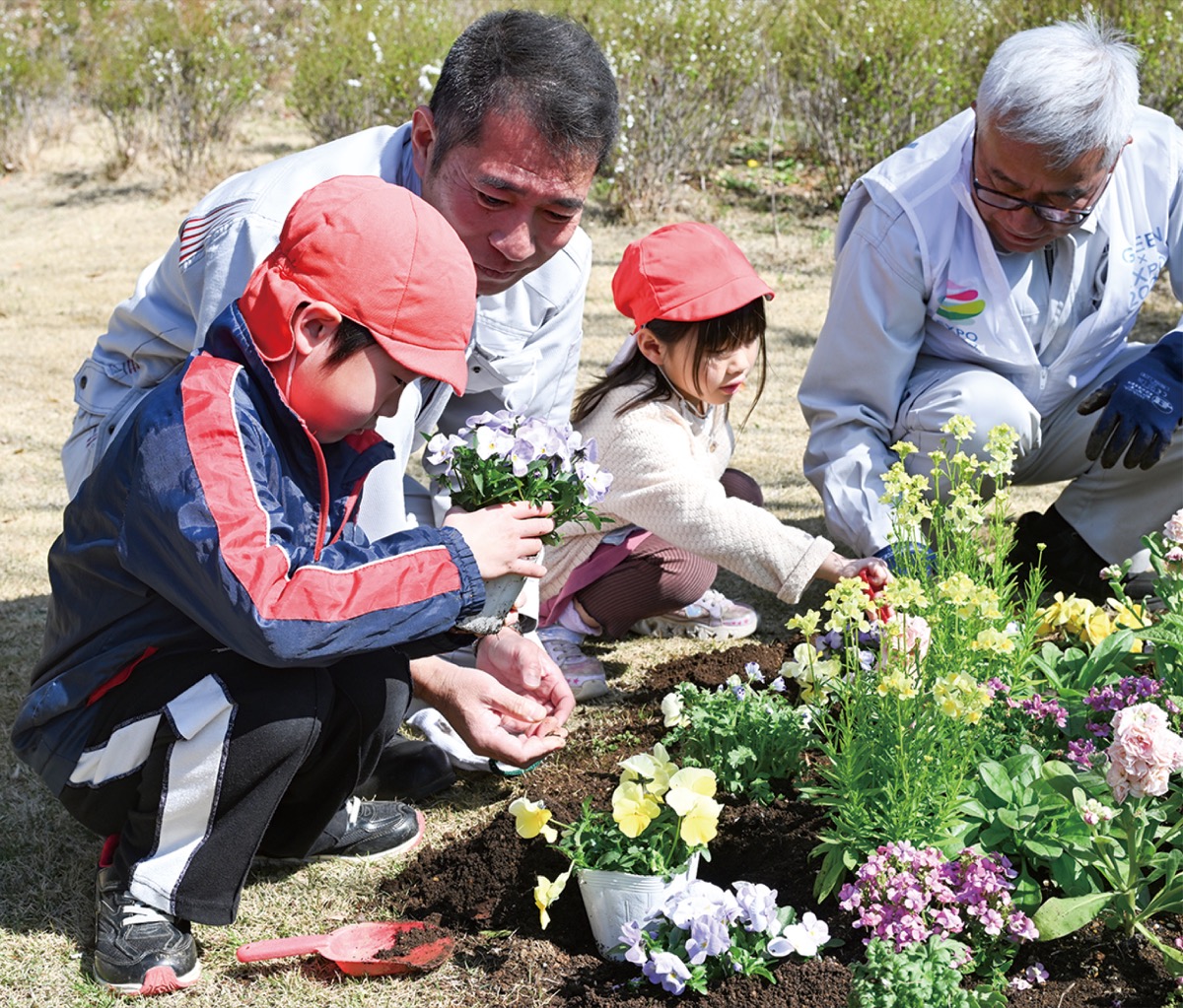 同園の池田美奈子園長は「GREEN×EXPO 2027」(園芸博)の開催を念頭に、「園児たちに身近なところから園芸博を意識してほしいと思い、花植えに参加した。今日体験したことが、大人になって生きてくるのでは」と語った。