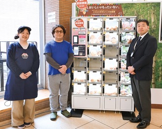 横浜市と金沢区の(株)アルファロッカーシステムが共同で実施している取組。ロッカー型の自動販売機で、設置は市内7カ所目で病院としては初となる。横浜市によると、今回の設置により年間で3・5トン程度の廃棄物を削減できるという。
