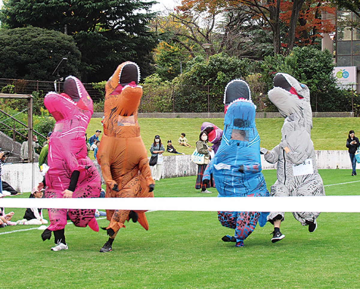 サッカーやラグビーなどのスポーツ体験、野外コンサート、スタンプラリー、好評のティラノサウルスレースなどの企画を開催。50以上のマルシェやキッチンカーも出店し、子どもから高齢者まで楽しめる。(問)min.parkfes23@gmail.com