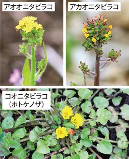 なかには交雑して中間的な個体もあり、アイオニタビラコなどと呼んでいる。青鬼か赤鬼かを見極めながら、瀬谷区内をゆっくり散策するのも楽しいことであろう。