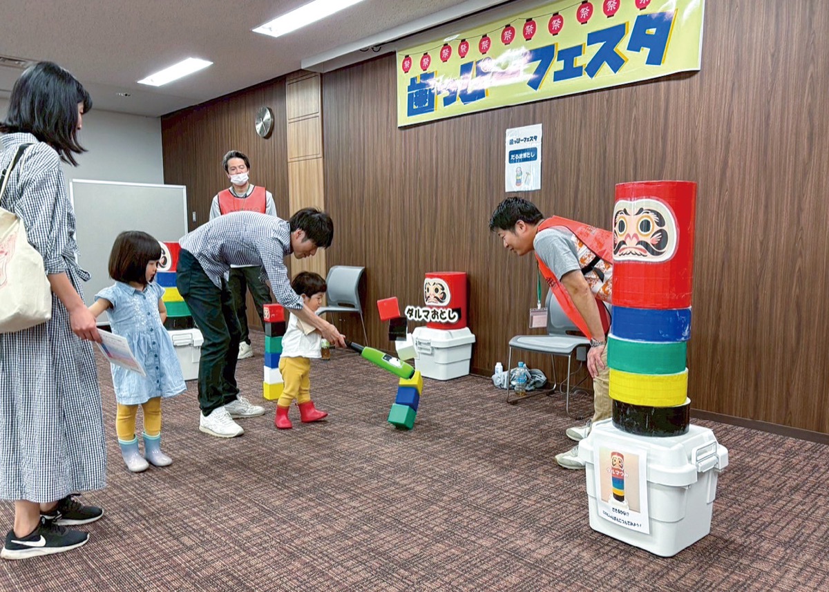 「歯っぴーフェスタ」と題して、未就学児のむし歯のリスク判定テストや、フッ化物塗布、歯科相談なども実施。輪投げや釣り、的当てなどの縁日プログラムもあり、小さな子どもをはじめ、多くの来場者で賑わった。