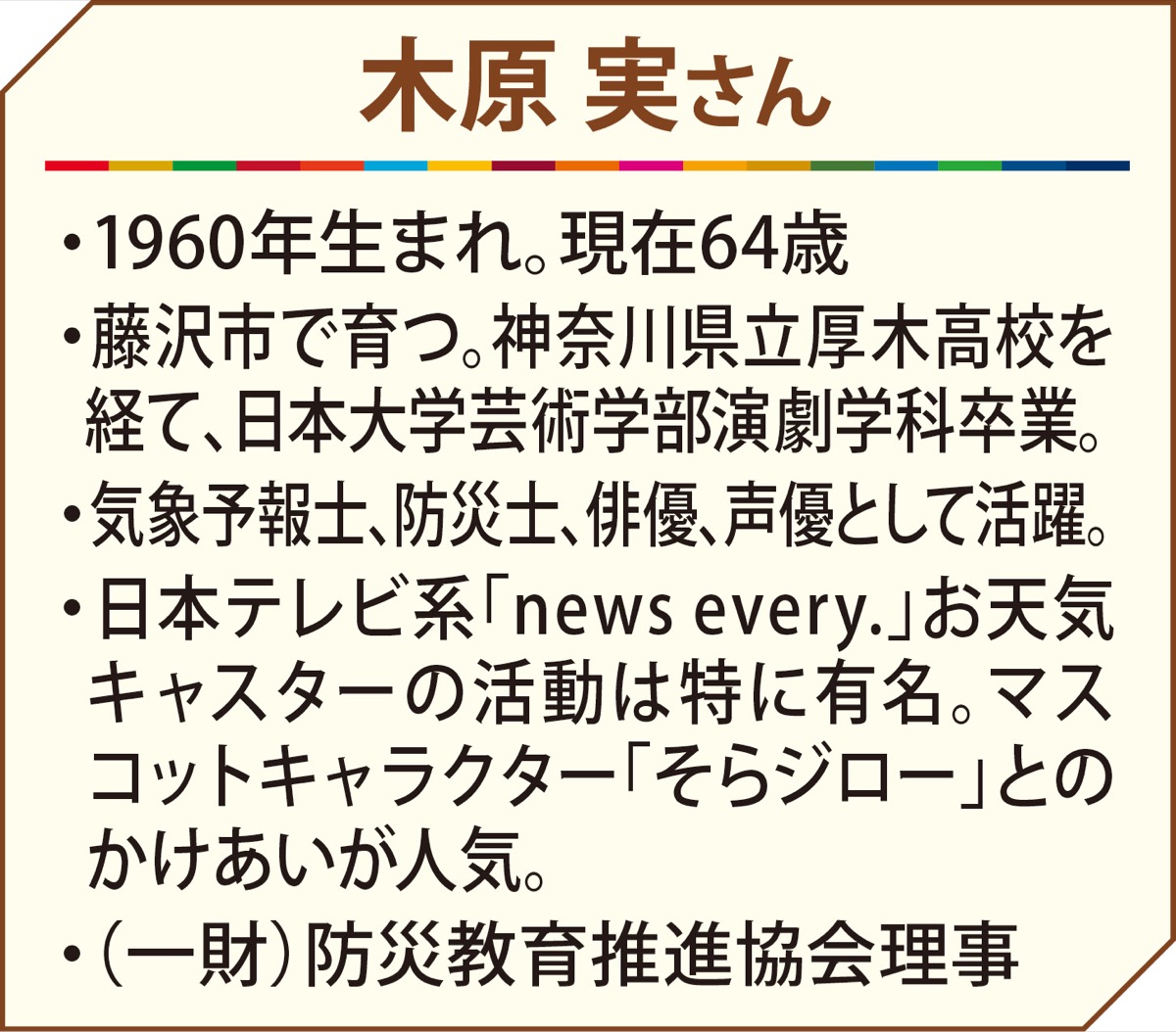 「人間の力では気候変動を止められないだろうと思っています。コンピューターの計算ではじりじりと温暖化していくはずなんですが、実際は急上昇。一方、この冬の西日本の気温は低かった。自然は予測不能な変動を大きく起こします。温暖化で海水温も上がり強い台風が来ると言われており、実際、日本付近の海水温は過去にないくらい高くなりました。 けれども未だに1934年の室戸台風や1959年の伊勢湾台風を超える台風は来ていない。では異常気象とどう向き合うか。僕は対処療法だと思います。その環境に人が適応していくこと。SDGs的な対策を進めつつ、寒波や大雪、熱波や洪水に備える。天気予報は効果があります」