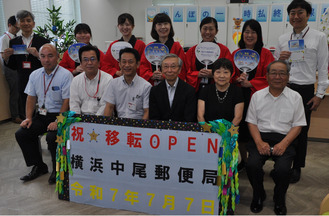 横浜市旭区の横浜中尾郵便局(東條康宏局長)の移転セレモニーが7月7日に開催され、局員や地域の関係者などが新たなスタートを祝った。